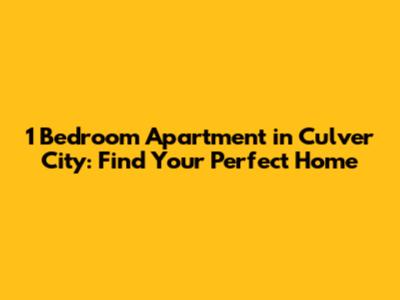 1 Bedroom Apartment In Culver City: Find Your Perfect Home