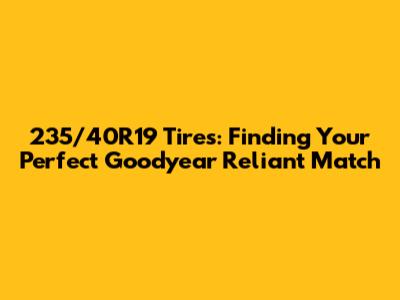 235/40R19 Tires: Goodyear Reliant Options