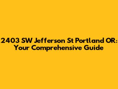 Hey guys! Let's dive into everything you need to know about 2403 SW Jefferson St, Portland, OR. Whether you're a prospective buyer, a curious neighbor, or just someone interested in Portland real estate, this guide is designed to give you a detailed overview. We'll cover location specifics, neighborhood insights, property characteristics, and all the essential details to paint a clear picture of this address.