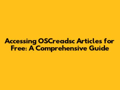 Respect Copyright: The content on OSCreadsc, just like any other published content, is protected by copyright laws. These laws give the authors and publishers exclusive rights to control how their work is used. When accessing articles without paying, it's important to remember that you are viewing content that is usually intended for paying subscribers. Always be respectful of the author's work.