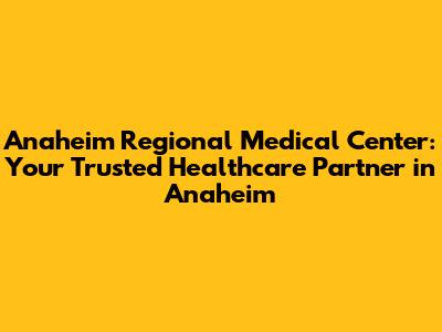 Anaheim Regional Medical Center: Your Healthcare Partner