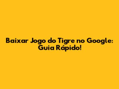 Baixar Jogo Do Tigre No Google: Guia Rápido!