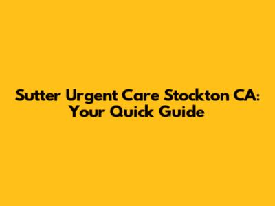 Sutter Urgent Care Stockton CA: Your Quick Guide