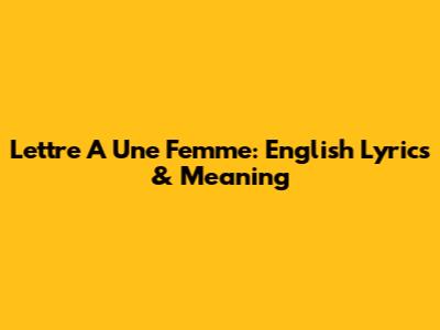 Lettre A Une Femme: English Lyrics & Meaning