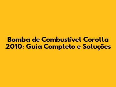 Bomba De Combustível Corolla 2010: Guia Completo E Soluções