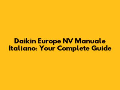 Daikin Europe NV Manuale Italiano: Your Complete Guide