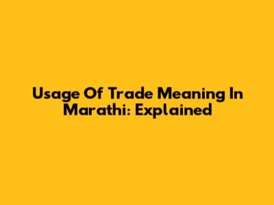 Usage Of Trade Meaning In Marathi: Explained