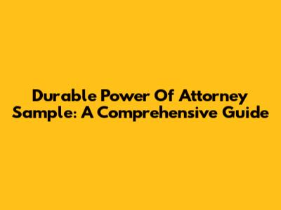 Durable Power Of Attorney Sample: A Comprehensive Guide