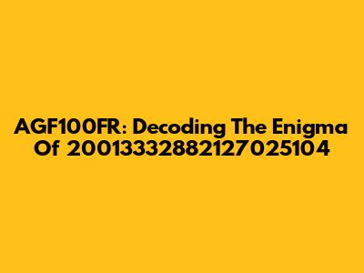 AGF100FR: Decoding The Enigma Of 20013332882127025104