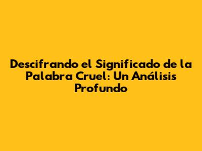 Descifrando El Significado De La Palabra Cruel: Un Análisis Profundo