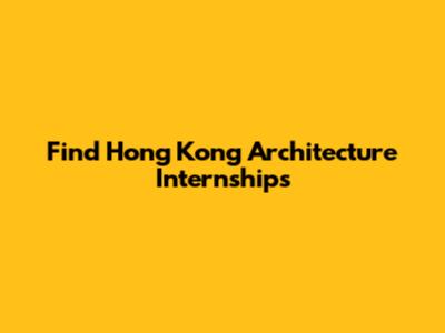 Find Hong Kong Architecture Internships