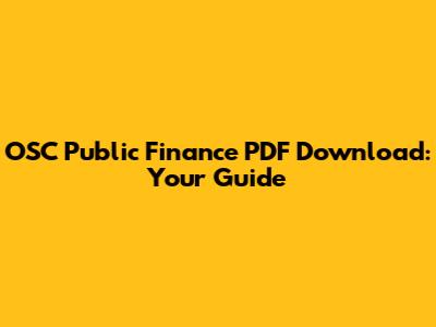 Download OSC Public Finance PDF: Your Guide