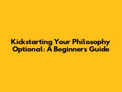 Kickstarting Your Philosophy Optional: A Beginner's Guide