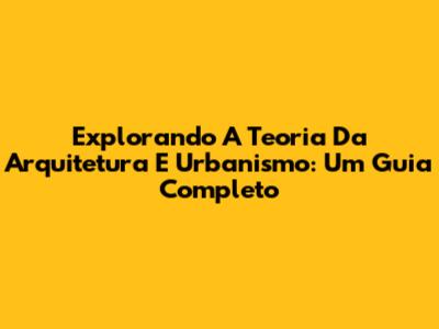 Explorando A Teoria Da Arquitetura E Urbanismo: Um Guia Completo