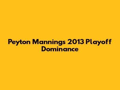 Peyton Manning's 2013 Playoff Dominance
