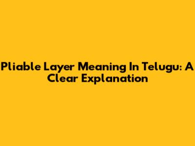 Pliable Layer Meaning In Telugu: A Clear Explanation
