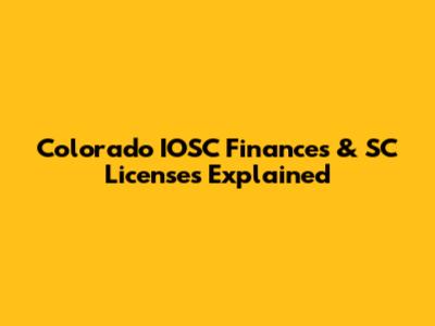 Colorado IOSC Finances & SC Licenses Explained
