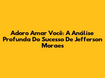 Adoro Amar Você: A Análise Profunda Do Sucesso De Jefferson Moraes