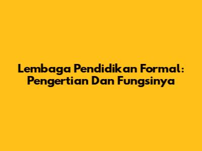 Lembaga Pendidikan Formal: Pengertian Dan Fungsinya