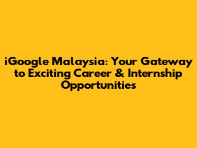 Hey guys! Ever dreamt of working for a tech giant in a vibrant, multicultural environment? If you're nodding your head, then listen up! We're diving deep into the world of iGoogle Malaysia, exploring the amazing career and internship opportunities it offers. Whether you're a fresh graduate, an experienced professional, or a student eager to gain real-world experience, iGoogle Malaysia might just be your perfect launchpad. So, buckle up and let's explore how you can kickstart your career with one of the most innovative companies in the world!