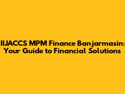 Hey guys! Looking for financial solutions in Banjarmasin? Let's dive into what IIJACCS MPM Finance Banjarmasin has to offer. Whether you're seeking funding for your business, need help with personal finances, or are just exploring your options, understanding the services available is super important. This article will break down everything you need to know about IIJACCS MPM Finance in Banjarmasin, making it easy to navigate their offerings and find the best fit for your needs.