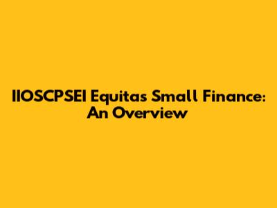 IIOSCPSEI Equitas Small Finance: An Overview