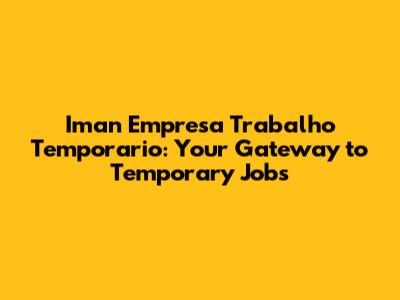 Hey guys! Are you looking for flexible work opportunities? Maybe you're a student trying to earn some extra cash, or perhaps you're between jobs and need something to tide you over. Whatever your situation, Iman Empresa Trabalho Temporario might just be the solution you've been searching for. This article dives deep into what Iman Empresa is all about, how it works, and how you can leverage it to find temporary work that suits your needs. We'll explore the types of jobs typically available, the benefits of working through a temporary agency, and some tips to make your application stand out. So, grab a coffee, get comfy, and let's explore the world of temporary work with Iman Empresa!
