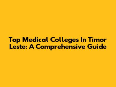 Top Medical Colleges In Timor Leste: A Comprehensive Guide