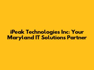 Are you searching for reliable and innovative IT solutions in Maryland? Look no further! In this article, we'll dive deep into iPeak Technologies Inc., a company dedicated to providing comprehensive technology services to businesses throughout Maryland. We will explore their service offerings, discuss their approach to client relationships, and explain why they might be the ideal partner to elevate your business's technological capabilities. This comprehensive guide ensures you have all the information you need to make an informed decision about your IT support.
