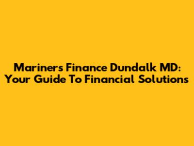Mariners Finance Dundalk MD: Your Guide To Financial Solutions