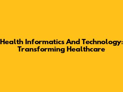 Health Informatics And Technology: Transforming Healthcare