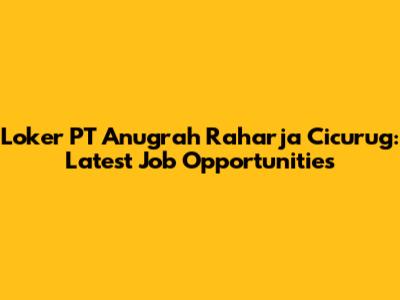 Loker PT Anugrah Raharja Cicurug: Latest Job Opportunities