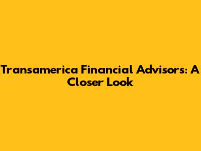 Transamerica Financial Advisors: A Closer Look
