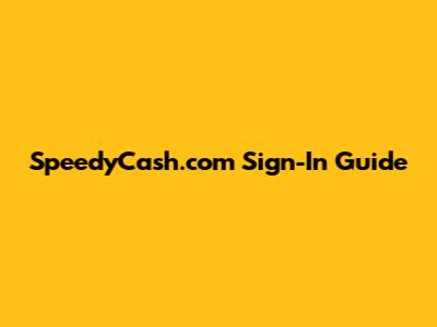 SpeedyCash.com Sign-In Guide