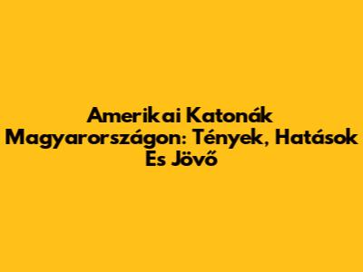 Amerikai Katonák Magyarországon: Tények, Hatások És Jövő
