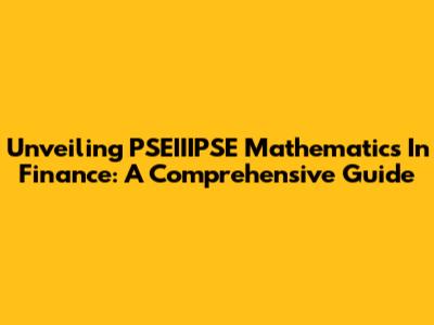 Unveiling PSEIIIPSE Mathematics In Finance: A Comprehensive Guide