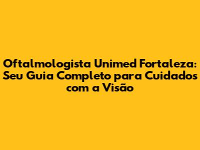 Oftalmologista Unimed Fortaleza: Guia Completo E Atualizado