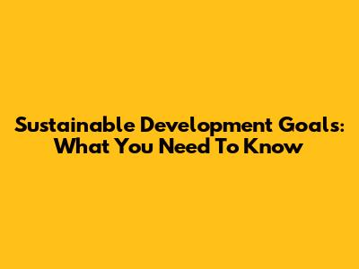 Sustainable Development Goals: What You Need To Know