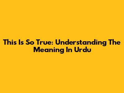 This Is So True: Understanding The Meaning In Urdu