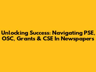 Unlocking Success: Navigating PSE, OSC, Grants & CSE In Newspapers