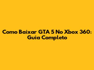 Como Baixar GTA 5 No Xbox 360: Guia Completo