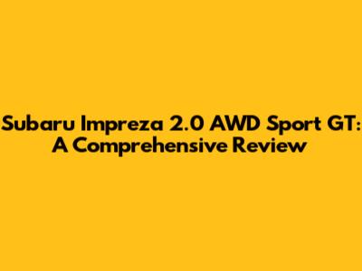 Subaru Impreza 2.0 AWD Sport GT: A Comprehensive Review