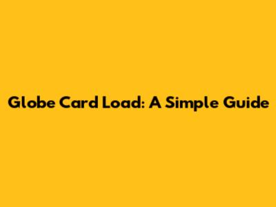 Globe Card Load: A Simple Guide