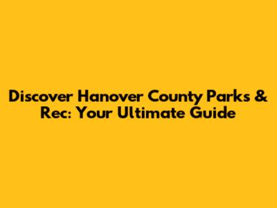 Discover Hanover County Parks & Rec: Your Ultimate Guide