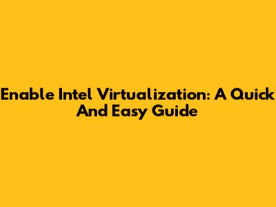 Enable Intel Virtualization: A Quick And Easy Guide