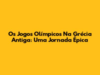 Os Jogos Olímpicos Na Grécia Antiga: Uma Jornada Épica