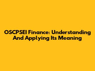 OSCPSEI Finance: Understanding And Applying Its Meaning