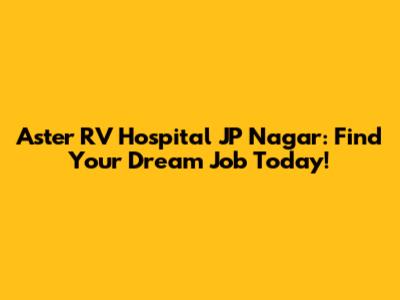 Aster RV Hospital JP Nagar: Find Your Dream Job Today!