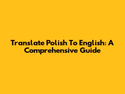 Translate Polish To English: A Comprehensive Guide