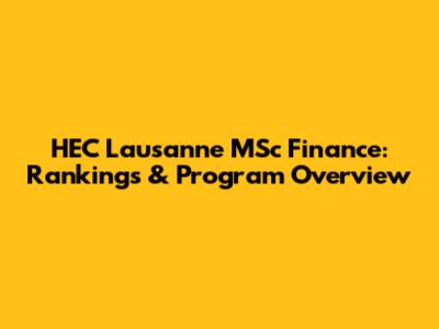 HEC Lausanne MSc Finance: Rankings & Program Overview
